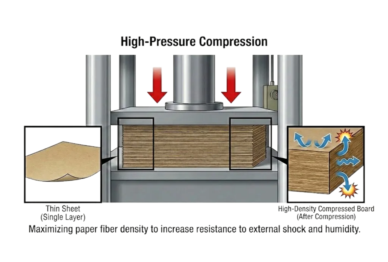 종이 섬유의 밀도를 극대화하여 외부 충격과 습도에 대한 저항력을 높입니다.