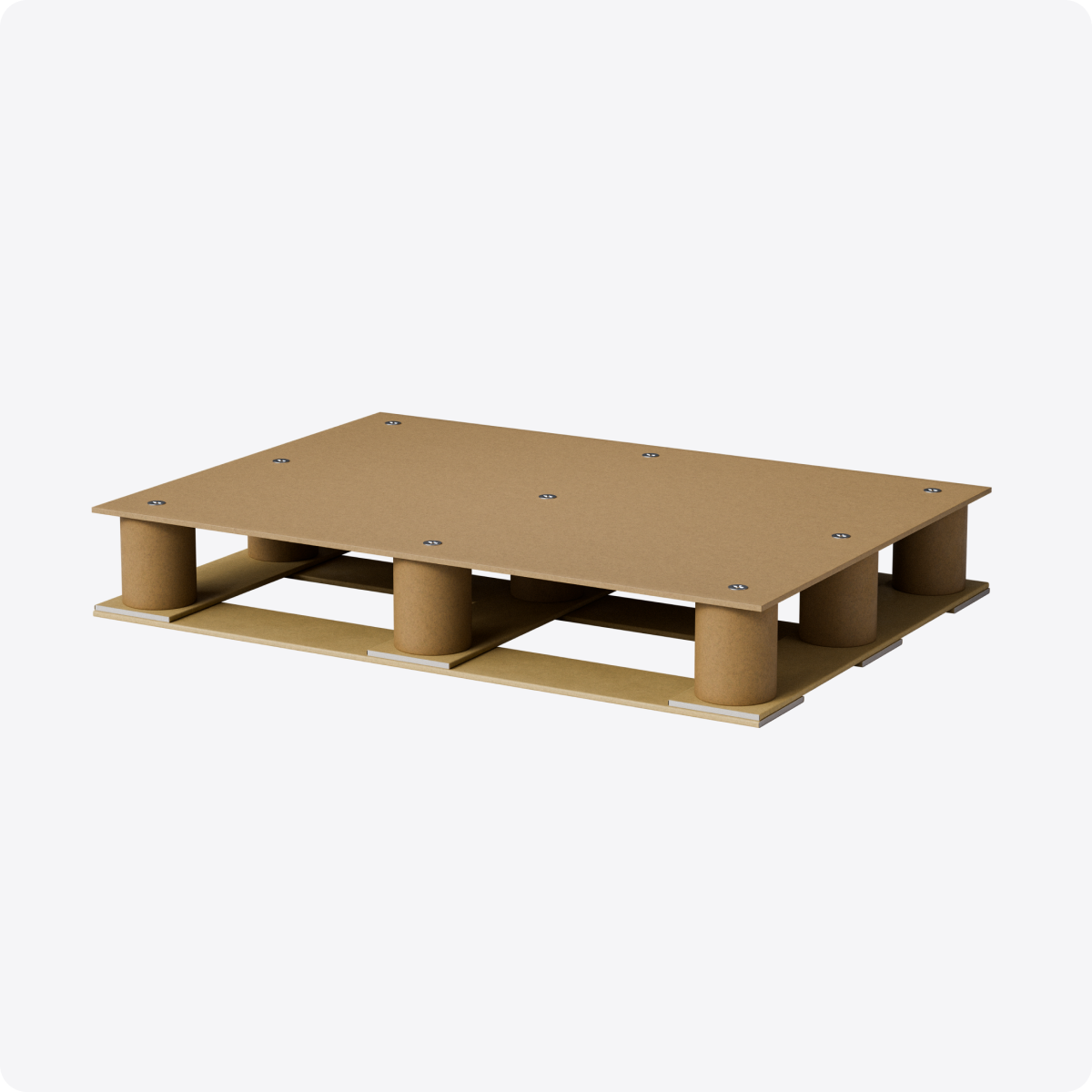 성림화학의 34년 기술력으로 개발된 고강도 압축 복합구조(High-Compressed Paper Pallet)로, 고압 적층 기술, 구조 설계, 볼트 체결 방식이 결합된 엔지니어드 파렛트입니다.